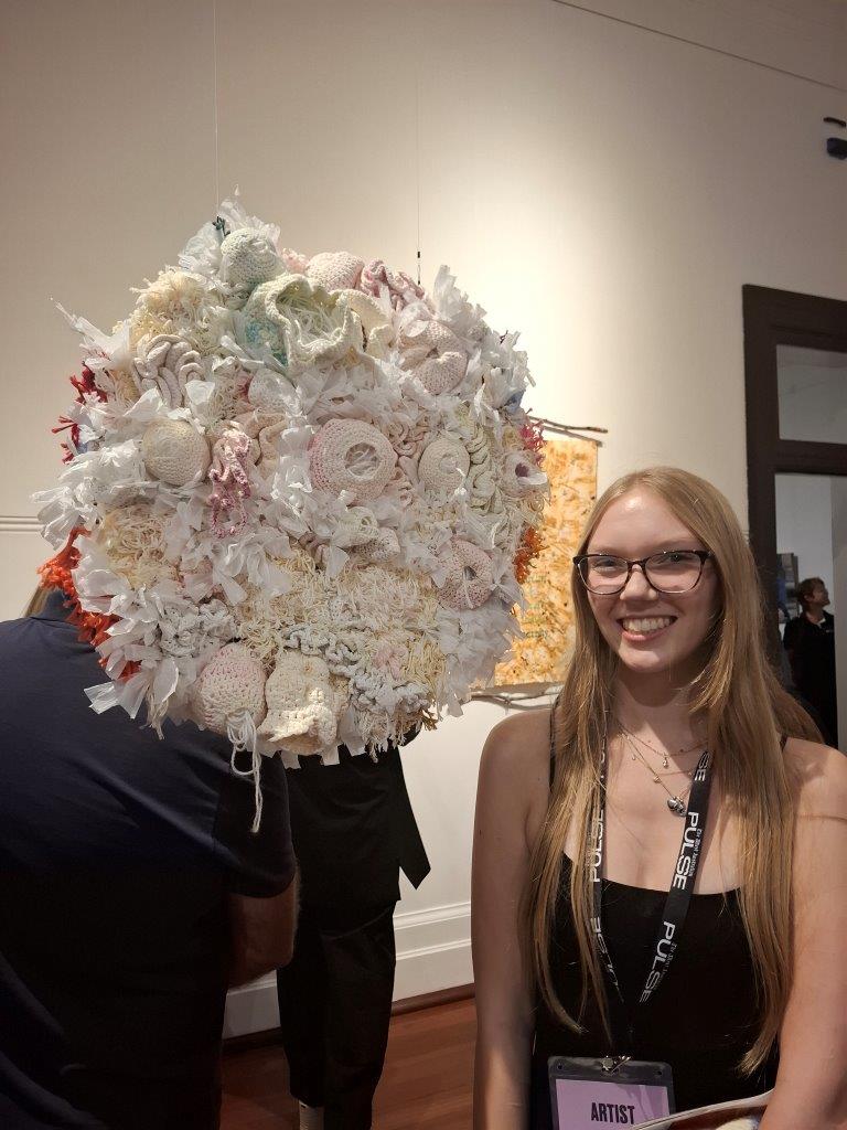 This year we are represented by Claire Haye and Olivia Plant who developed work around environmental concerns through their creative depictions of coral. Haye’s work examines the effects of climate change through her crocheted work, showing the dichotomy of our memories of colourful coral with the reality of coral bleaching. Plant on the other hand through digital art and crocheting, illustrates the spawning of new coral and the hope of rejuvenation.