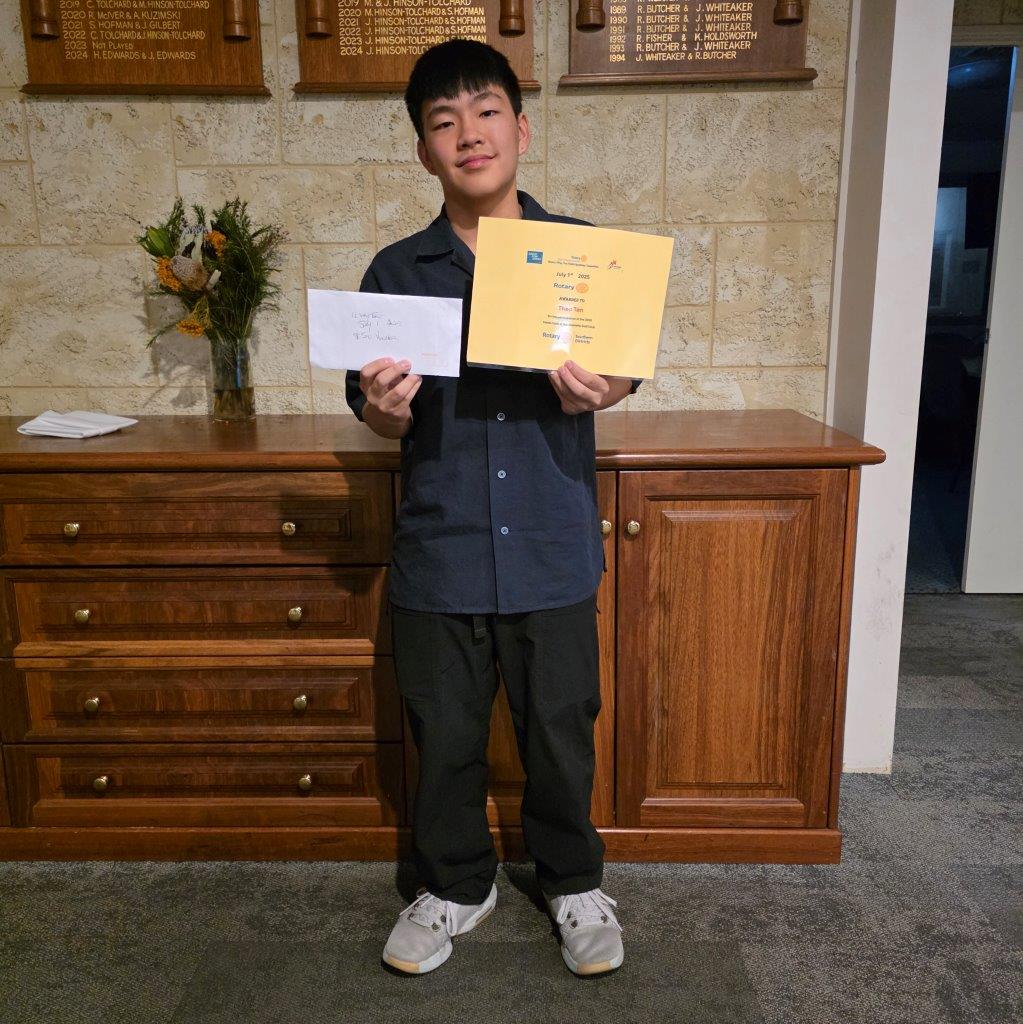 Congratulations to Theo Tan for winning this round of The Rotary Four Way Test Speech contest. He has been invited to attend the next round in August at Churchlands Senior High School!