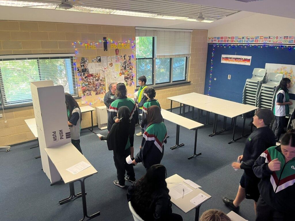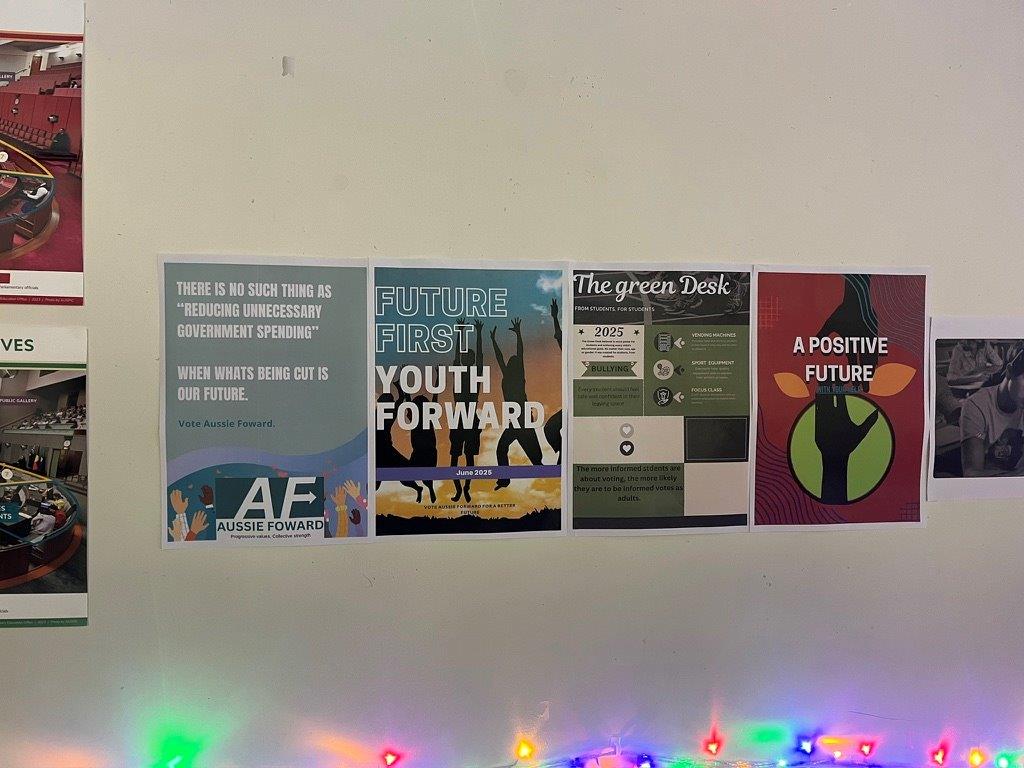 This term our year 9 students have been learning about Australia’s Political system. As part of this unit, the students brought politics to life by creating their own political party and trying to convince their classmates, education assistants, and guest teachers why they should vote for their party.