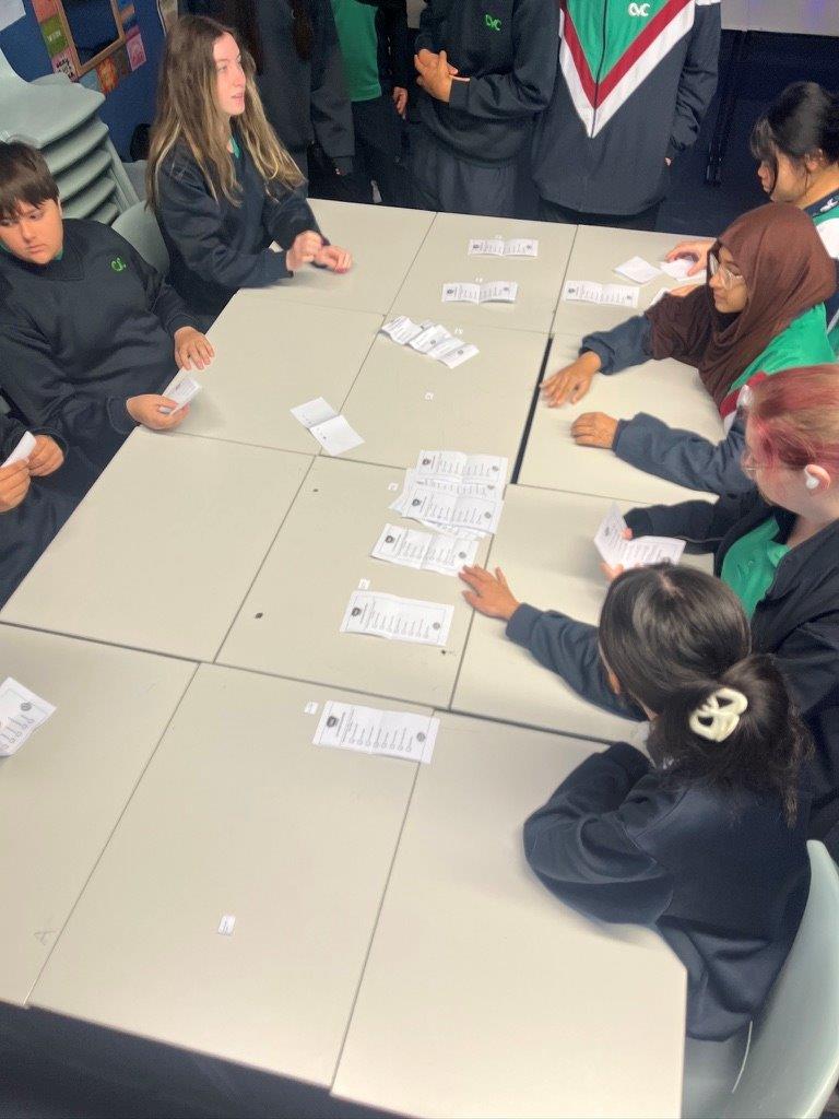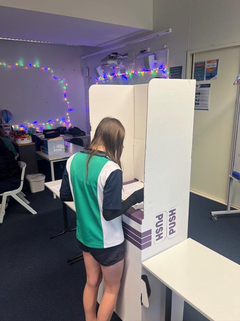 Students created a logo, slogan, party platform, key policies and campaign posters in preparation for the class election. The classroom was transformed into a polling place, with students acting as ‘election officers’, ticking names off the ‘electoral roll’, controlling the queue and guarding the ballot box to prevent tampering.