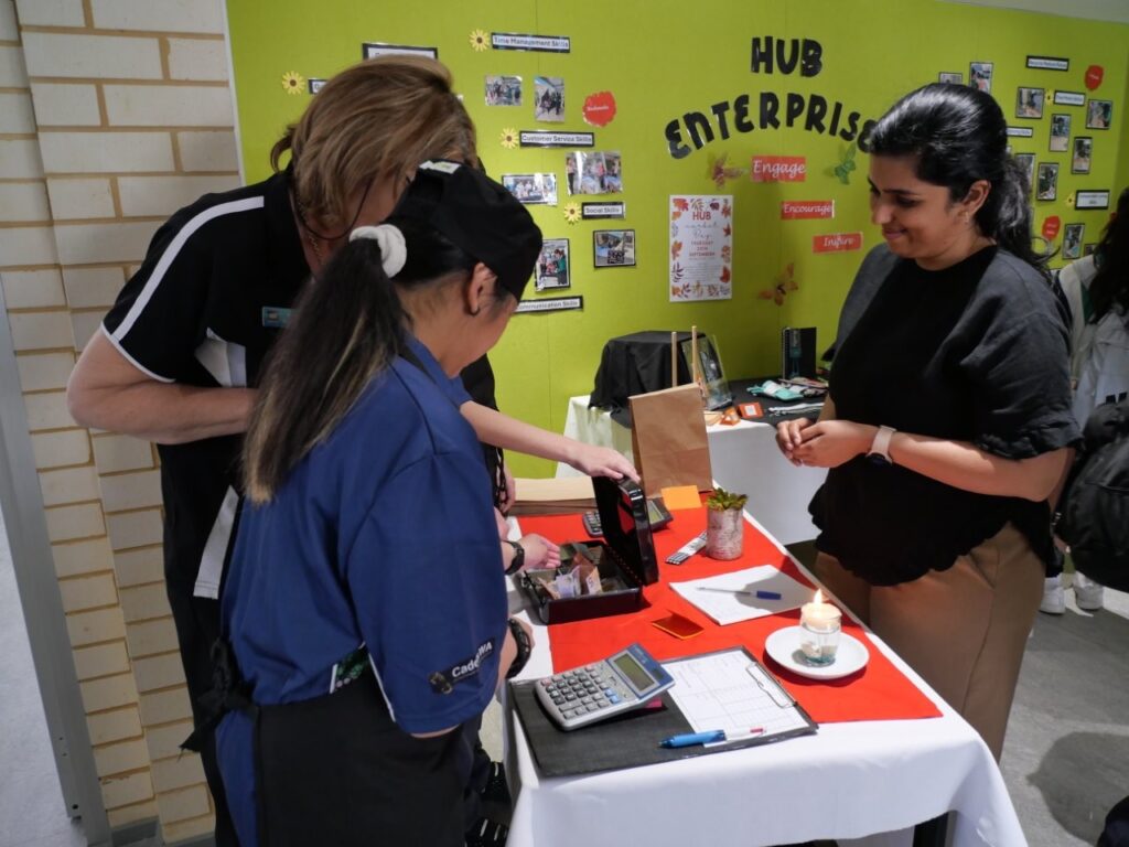 During Term 3 2025, our Canning Vale College Hub students put on a Market Day! Through the CADET program, students created unique items handmade from recycled or repurposed materials. The items made included bookmarks, scrunchies, candles, and more. The students were also making cappuccinos for staff and students for a gold coin donation.