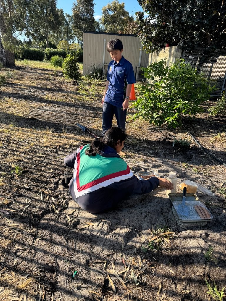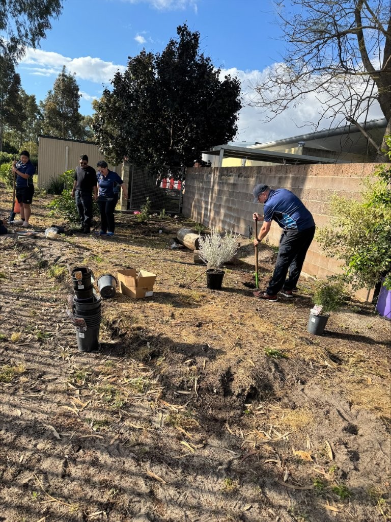 CVC principal Mr Gurr even came and visited the students while they were setting up the plants ready to be dug in. A portable BBQ was set up so the students could refuel as they worked with some sausages in bread. A couple of nearby residents also stopped by to check out the students work!