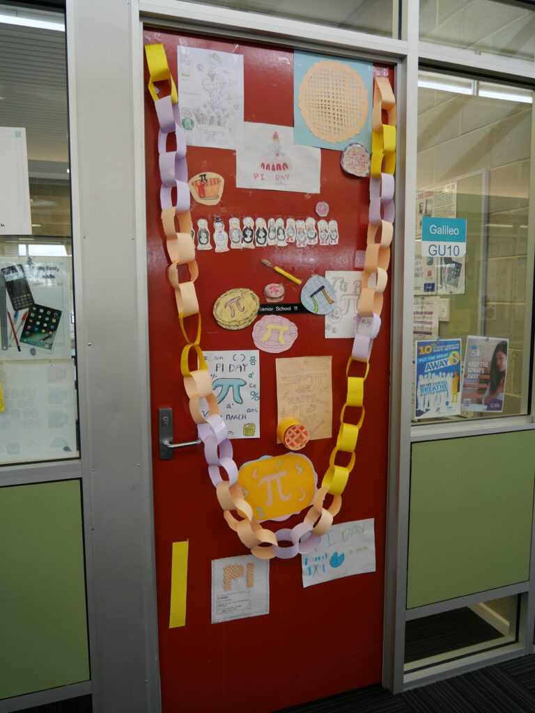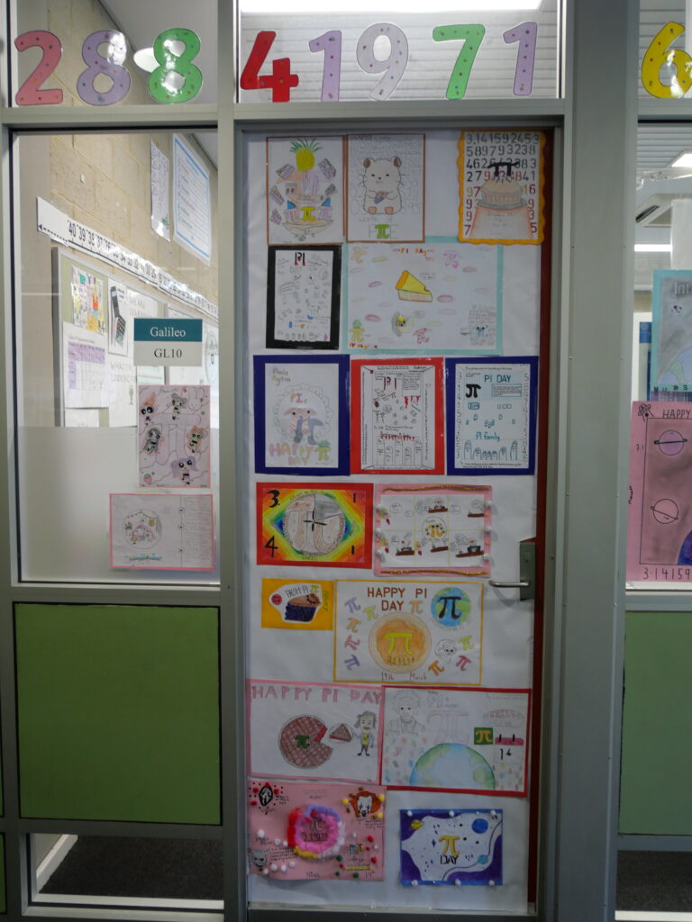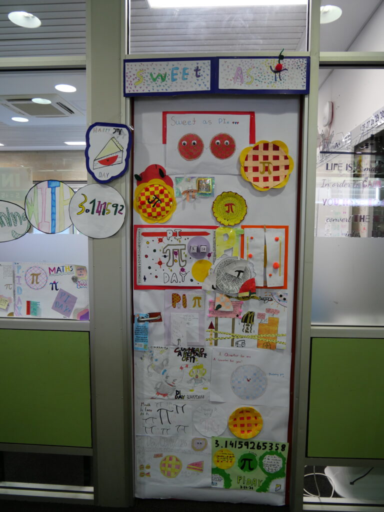 Pi Day Door Competition Classes went head‑to‑head in a friendly competition to design the best Pi‑themed classroom door — and the creativity was off the charts! From colourful digits to clever puns, our hallways were transformed into a celebration of maths and imagination.