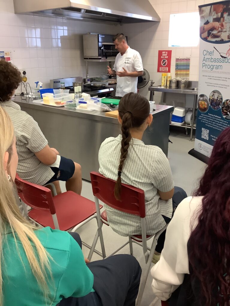The Cert II Hospitality and Cert I Baking students recently participated in an engaging incursion led by industry professional Kiren Mainwaring from Hospitality Group Training (HGT). Kiren delivered a live cooking demonstration, preparing a porcini mushroom risotto while guiding students through each stage of the process. He shared valuable insights into technique, timing, and ingredient selection, offering students a clear view of professional culinary practice.