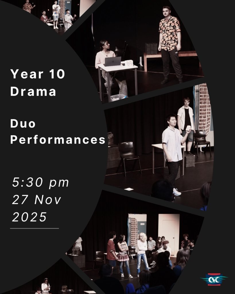 Year 9 Drama students are performing short plays that they have created to present positive messages to children about Stanger Danger, Healthy Eating and being kind. Perfect for 0–8-year-olds so bring along the children to enjoy the show. Tickets available from 9 am, 16 November 2025. Ticketing link: https://www.trybooking.com/DHNGJ
